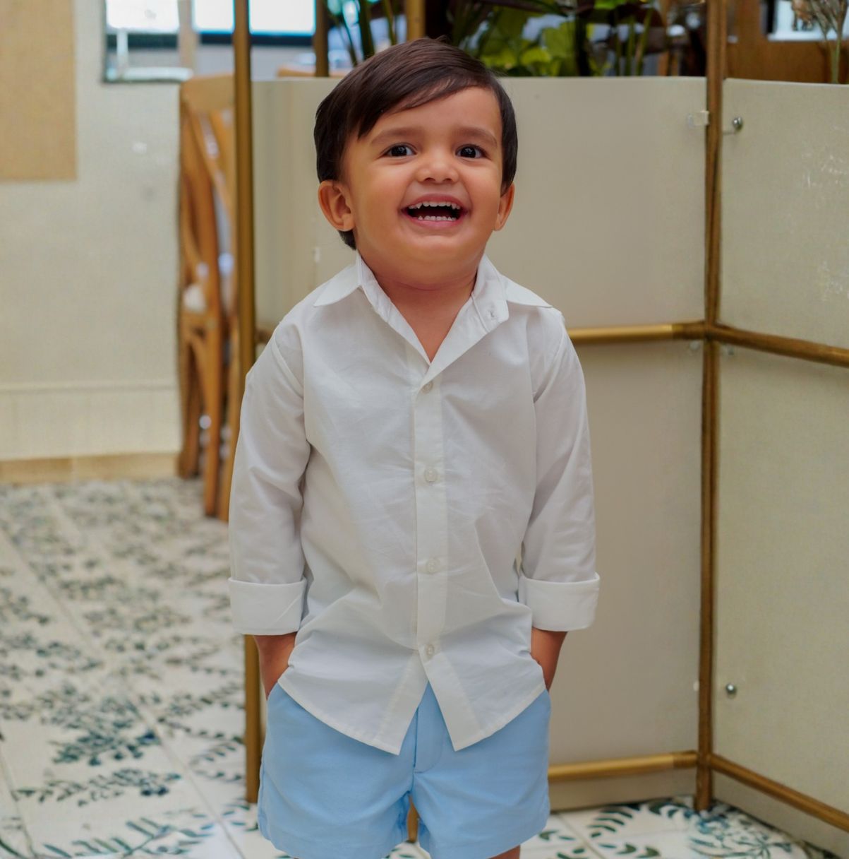 Camisa de manga larga para niño con cuello clásico y botones en el frente y las mangas, diseñada para brindar comodidad y estilo en cualquier ocasión. Su confección ofrece suavidad, frescura y un acabado impecable, ideal para looks formales o casuales.